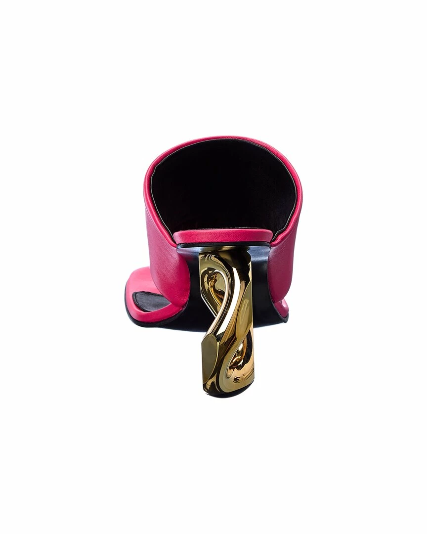 - Design details: gold-tone hardware, chain link heel and crystal toe ring