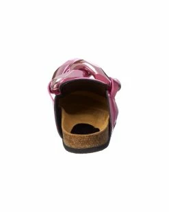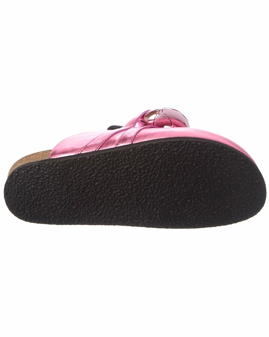 - Color/material: metallic pink leather