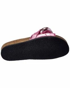 - Color/material: metallic pink leather